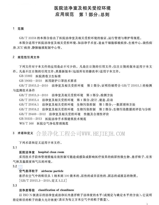醫(yī)院潔凈室及相關受控環(huán)境應用規(guī)范(GB/T33556.1-2017)全文完整版